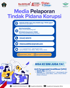 Media Pelaporan Tindak Pidana Korupsi Administrator Webs SKPD November 6, 2025 ADUAN, Berita Komentar Dinonaktifkan pada Media Pelaporan Tindak Pidana Korupsi 132 Views Related Articles Siraman Pusaka Gong Kyai Pradah Bulan Maulud Tahun 2023 Oktober 2, 2023 Gali Kreativitas Inovasi Teknologi, Pemkab Blitar Gelar Lomba Krenotek Juni 21, 2023 PENTASYARUFAN BADAN AMIL ZAKAT NASIONAL KAB. BLITAR DI KECAMATAN SUTOJAYAN OLEH BUPATI BLITAR Juni 12, 2023 Share Facebook Twitter Stumbleupon LinkedIn Pinterest