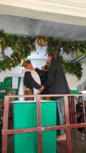 Setelah prosesi arak-arakan selesai dilanjutkan dengan persiapan ritual siraman pusaka Gong Kyai Pradah dengan dihadiri Muspika Kecamatan, Kepala Desa Kelurahan se kecamatan Sutojayan serta Pimpinan Lembaga yang berada di Kecamatan Sutojayan. Acara Siraman dilaksanakan dengan lancar dan khidmad dengan disaksikan oleh masyarakat sekitar.